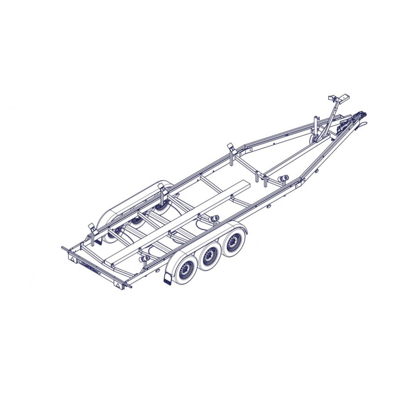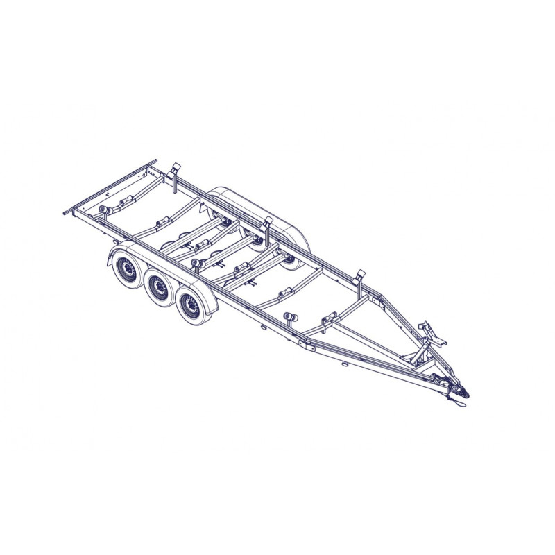 Remorque voilier 10m 3500kg 3 essieux de 1350kg chacun