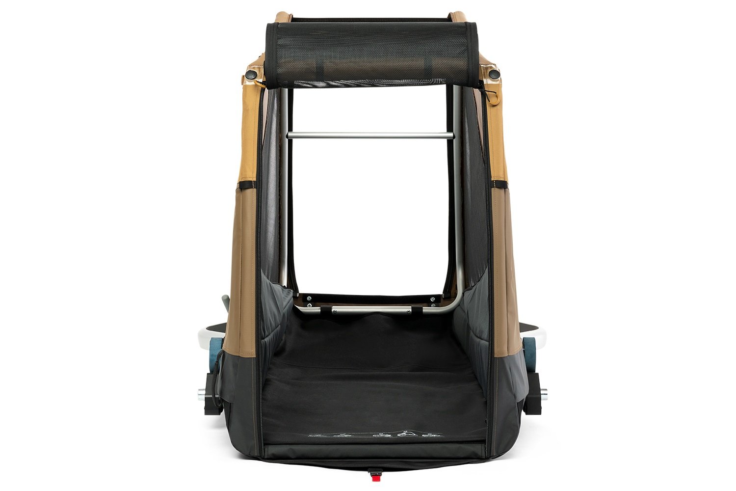 La fenêtre avant en maille peut être entièrement ou partiellement ouverte et est équipée d’une protection de pluie transparente amovible