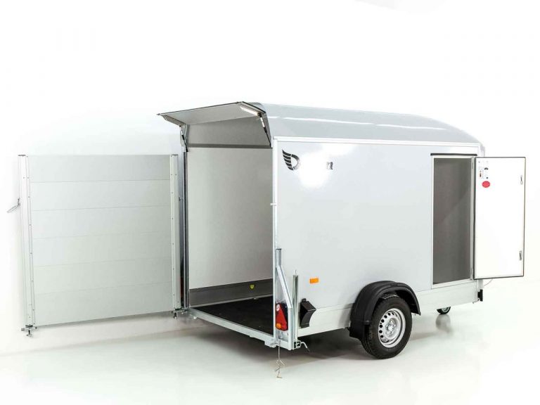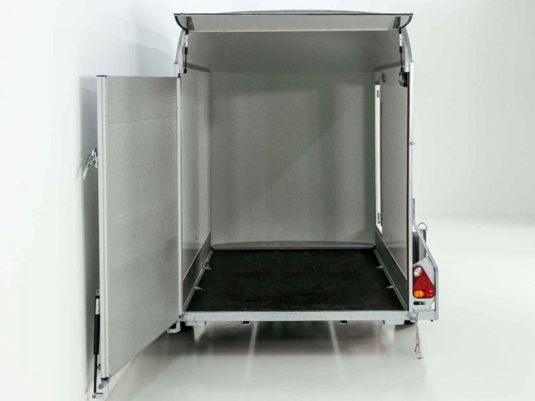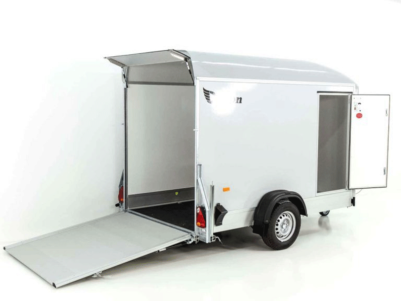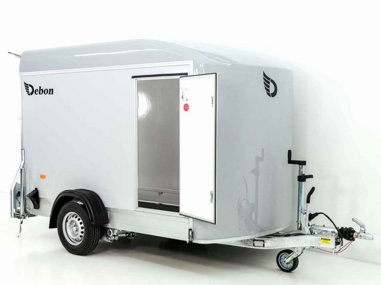 Remorque fourgon Debon C300 148 x 295 cm H : 190 cm 1,3 t | Polybug | Porte | Gris