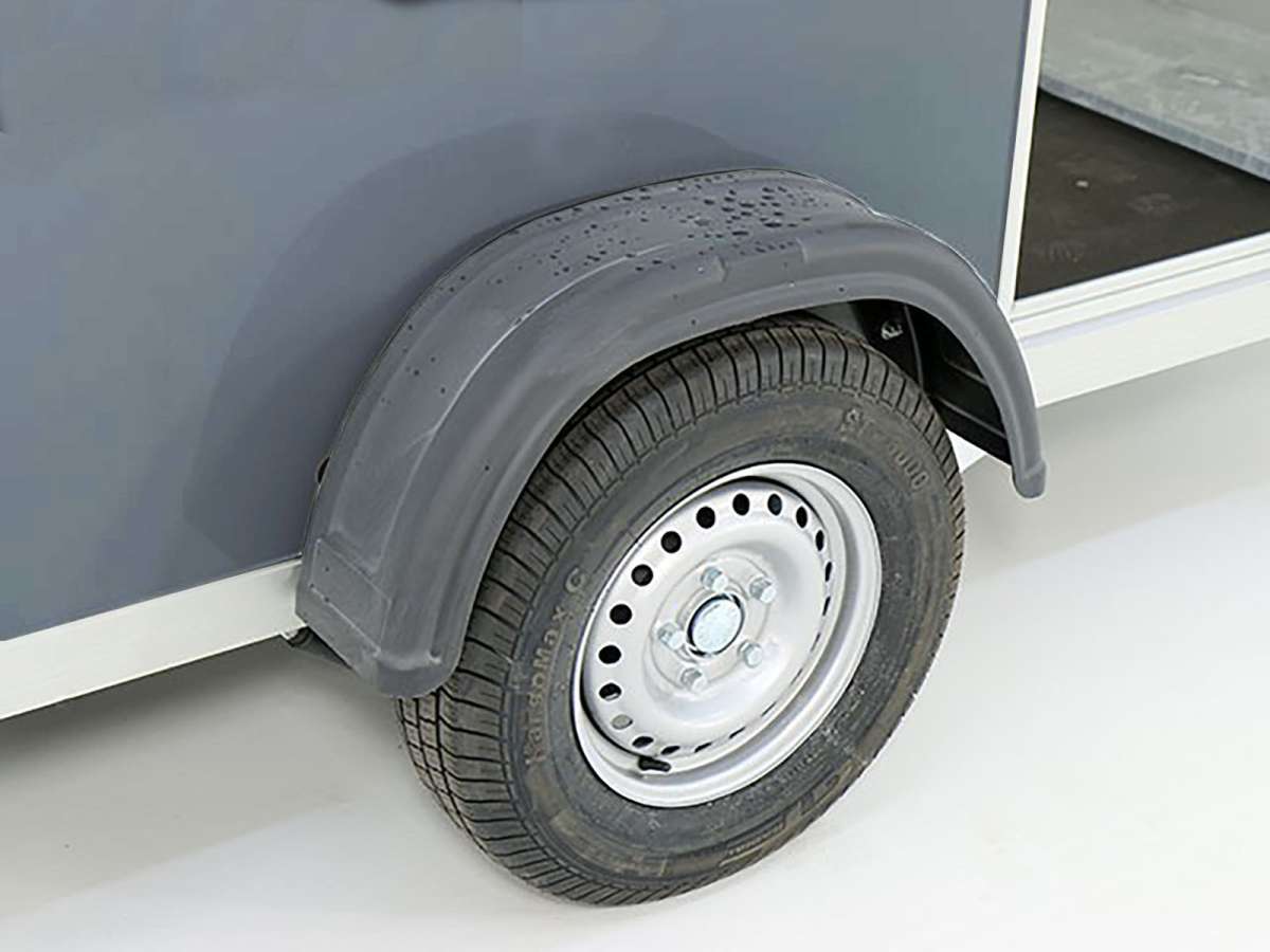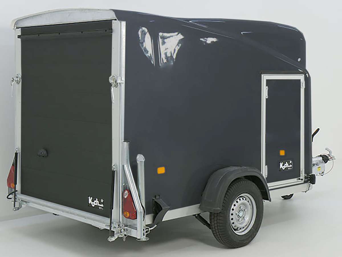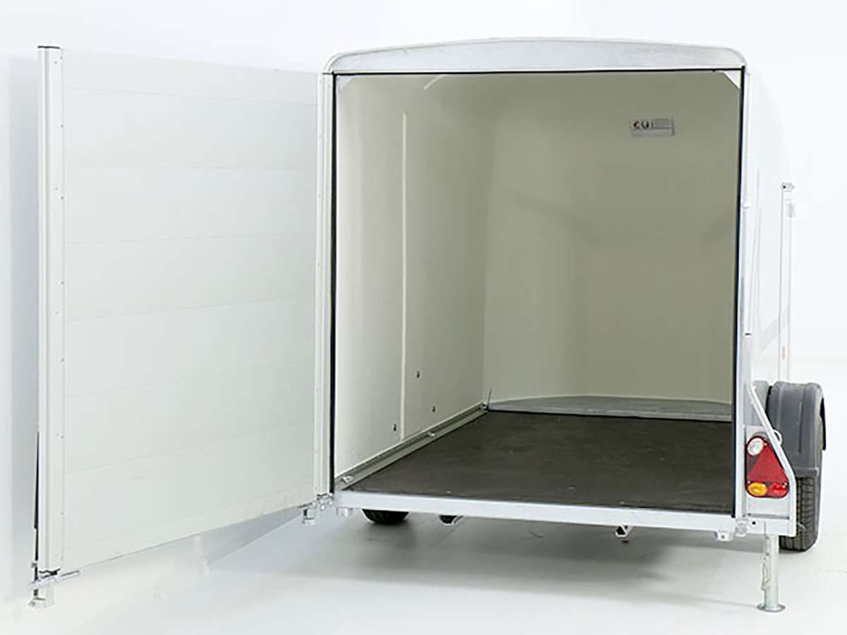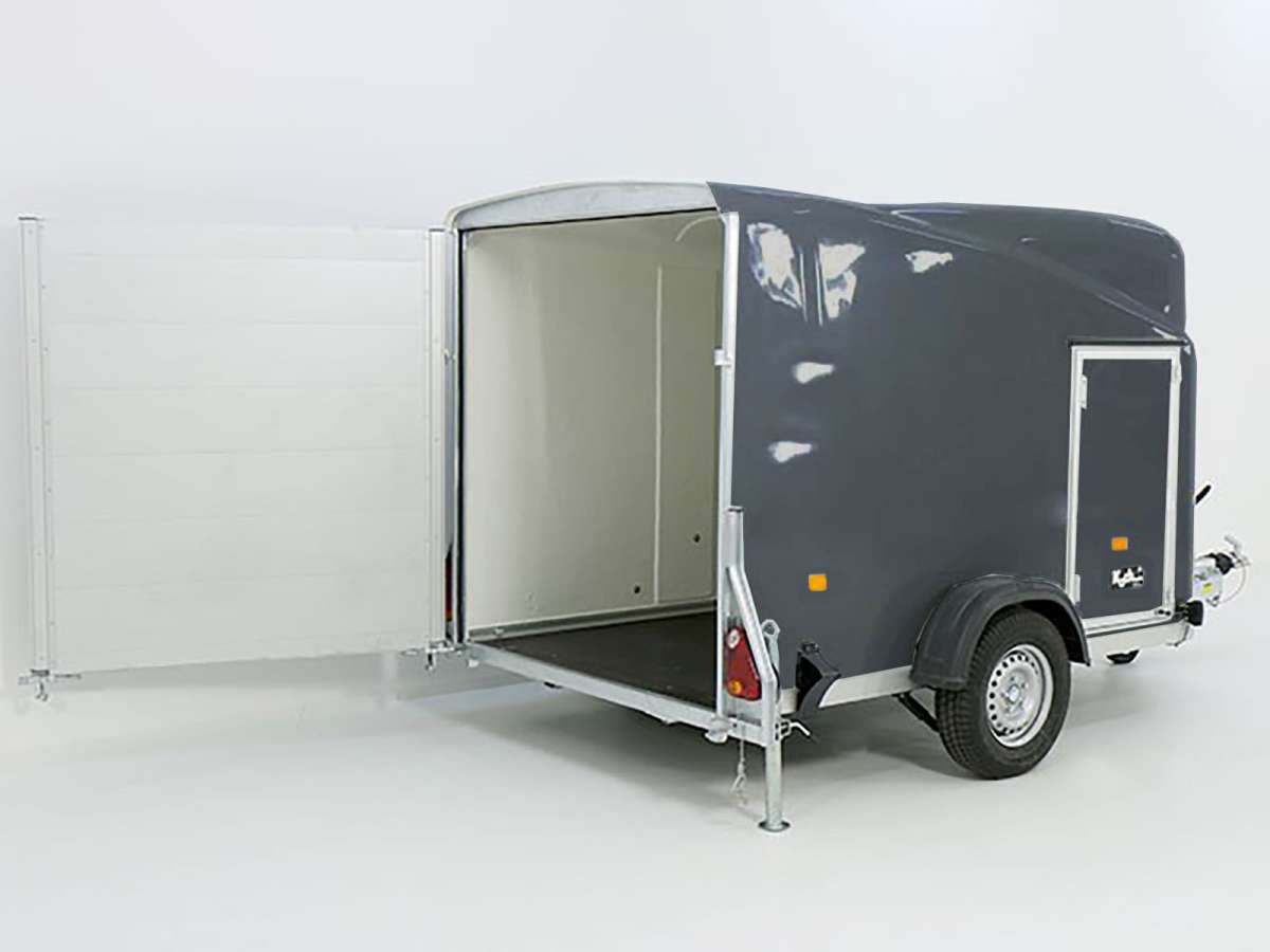 Informations produit : « Remorque fourgon Debon Cargo 1300, tout poly, 150 x 290 cm » H : 160 cm | Porte | Gris