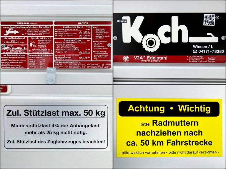Remorque pour voiture avec couvercle, type 4.13, dimensions de chargement : 125 x 250 x 65 cm. Remorque légère en aluminium avec un PTAC de 1 300 kg et une charge utile de 1 060 kg, garantie de 10 ans. Koch-Anhängerwerke fabrique des remorques de qualité fabriquées en Allemagne depuis plus de 30 ans. Caractéristiques spéciales