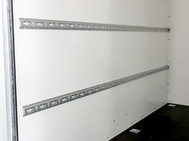 Remorque fourgon blanche robuste avec dimensions de chargement de 146 x 304 cm et hauteur intérieure de 180 cm. Cette remorque, d’un poids total en charge de 1 300 kg et d’une charge utile d’environ 686 kg, est de la marque Blyss.