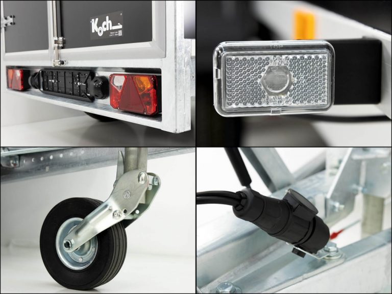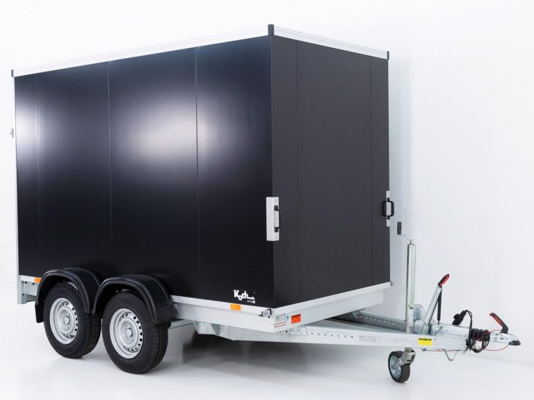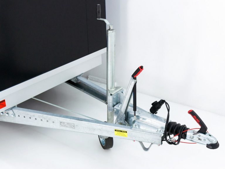 Fourgon, roue jockey automatique robuste, galvanisé à chaud, marche arrière automatique, essieu à ressorts en caoutchouc, frein à inertie. VÉHICULE NEUF ! Caisse sandwich en acier de 30 mm, toit sandwich en polyester renforcé de fibres de verre de 25 mm, extérieur noir et intérieur blanc, cadre arrière et profilés de bordure en aluminium spécial, rampe de chargement en aluminium verrouillable avec crémone, 6 œillets d’arrimage dans la plaque de base, éclairage avec connecteur 13 broches, remorque équipée de barres d’arrimage en aluminium des deux côtés ! Garantie constructeur ! Vitesse maximale de 100 km/h disponible moyennant un supplément.