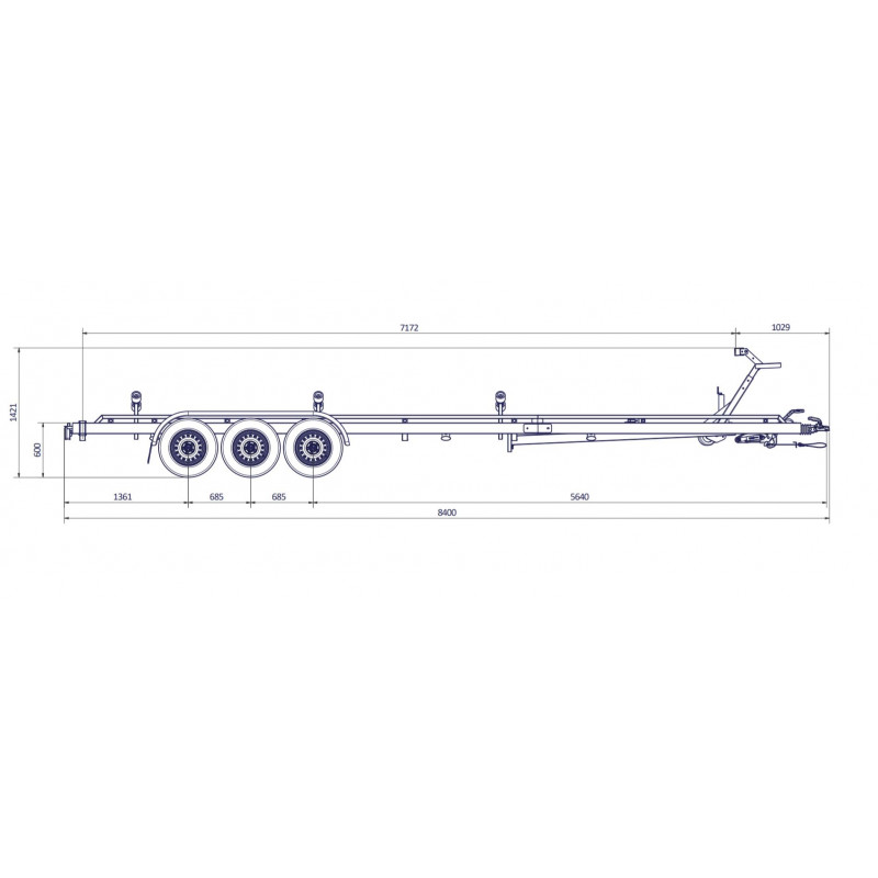 8m40-2m55 – 3 x 1500 kg – 3500 kg – VLEMMIX – Remorque transport bateau