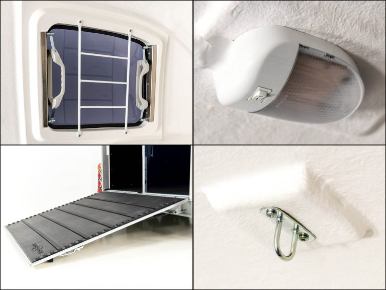 Toujours en avant : grâce à ses vitres avant réglables sur cinq positions, le XANTHOS MAXIMUS est toujours à l’aise. Un déflecteur de vent de série et une trappe de toit en option assurent un aération optimale. Mais le confort n’est pas la seule priorité chez Humbaur : la cloison verrouillable, les parois latérales solides en polypropylène et le profilé de cadre galvanisé à chaud font du XANTHOS MAXIMUS un van à chevaux stable et robuste, répondant aux exigences les plus strictes.