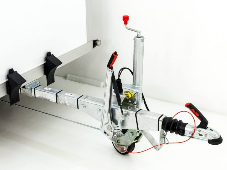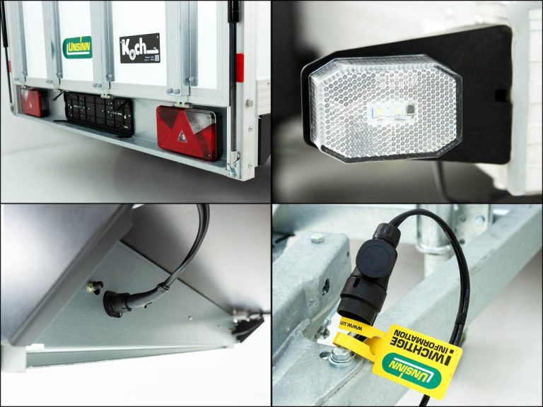 • Remorque équipée de rails de sécurité des deux côtés et à l’avant ! Système d’arrimage avec 8 anneaux d’arrimage réglables